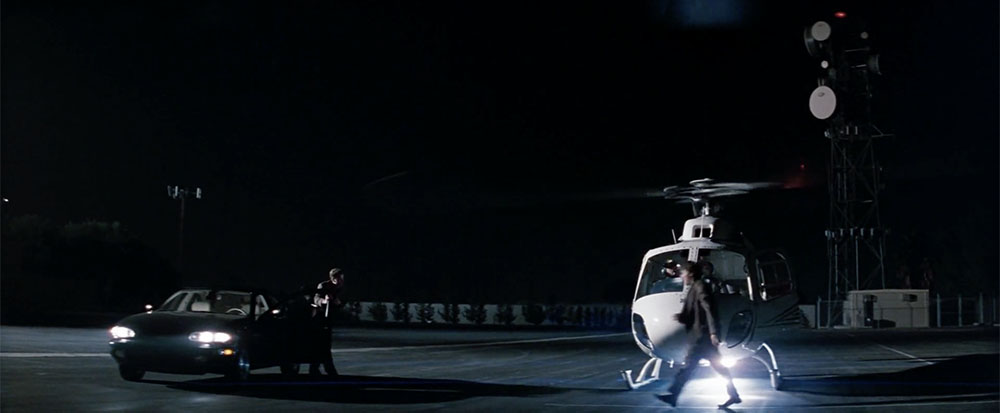Exterior – Hanna exits helicopter